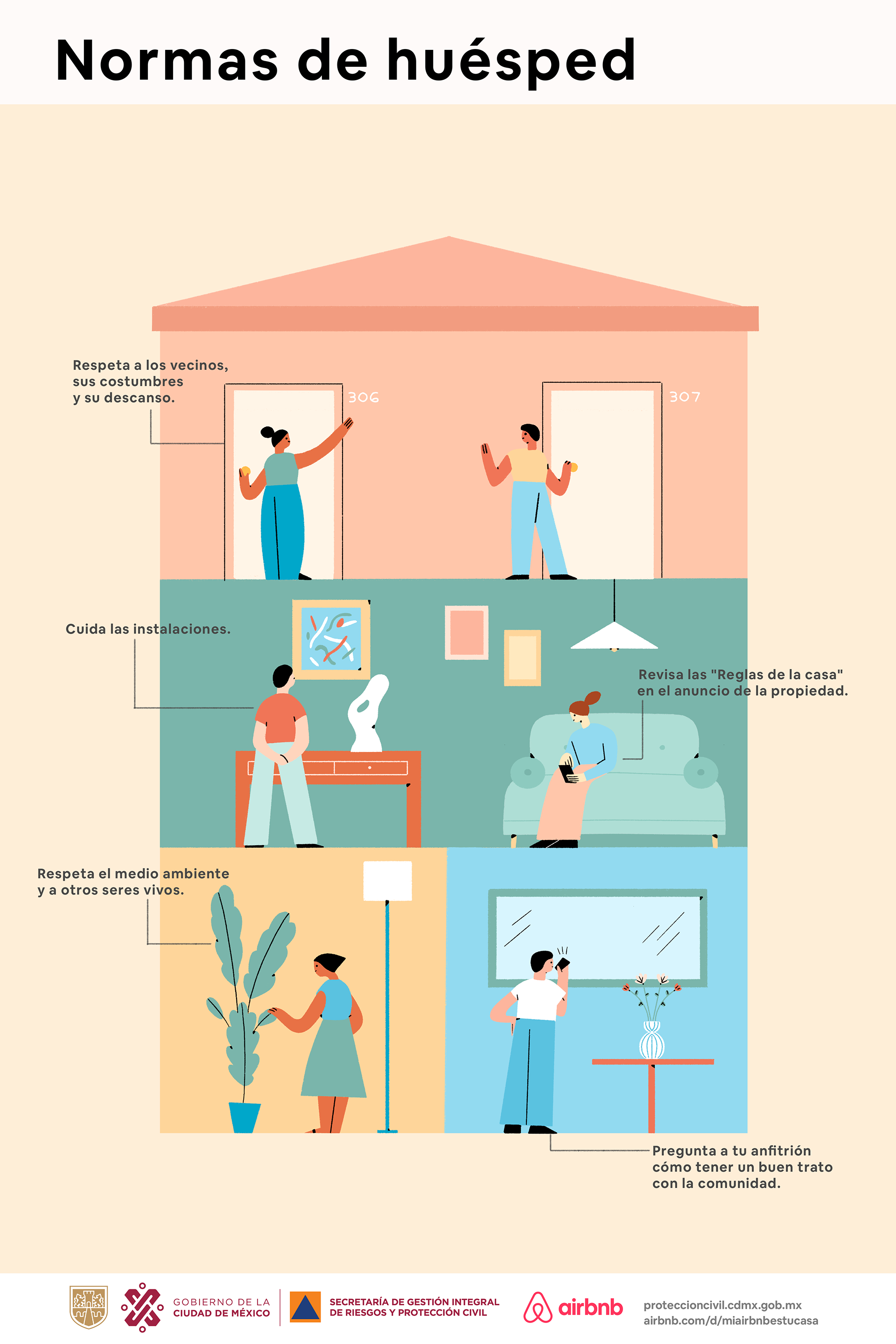 Illustrations for Airbnb Mexico about what you need to have a safe and comfortable space/ Ilustraciones para Airbnb México sobre las medidas que se deben tomar para un alojamiento cómodo y seguro