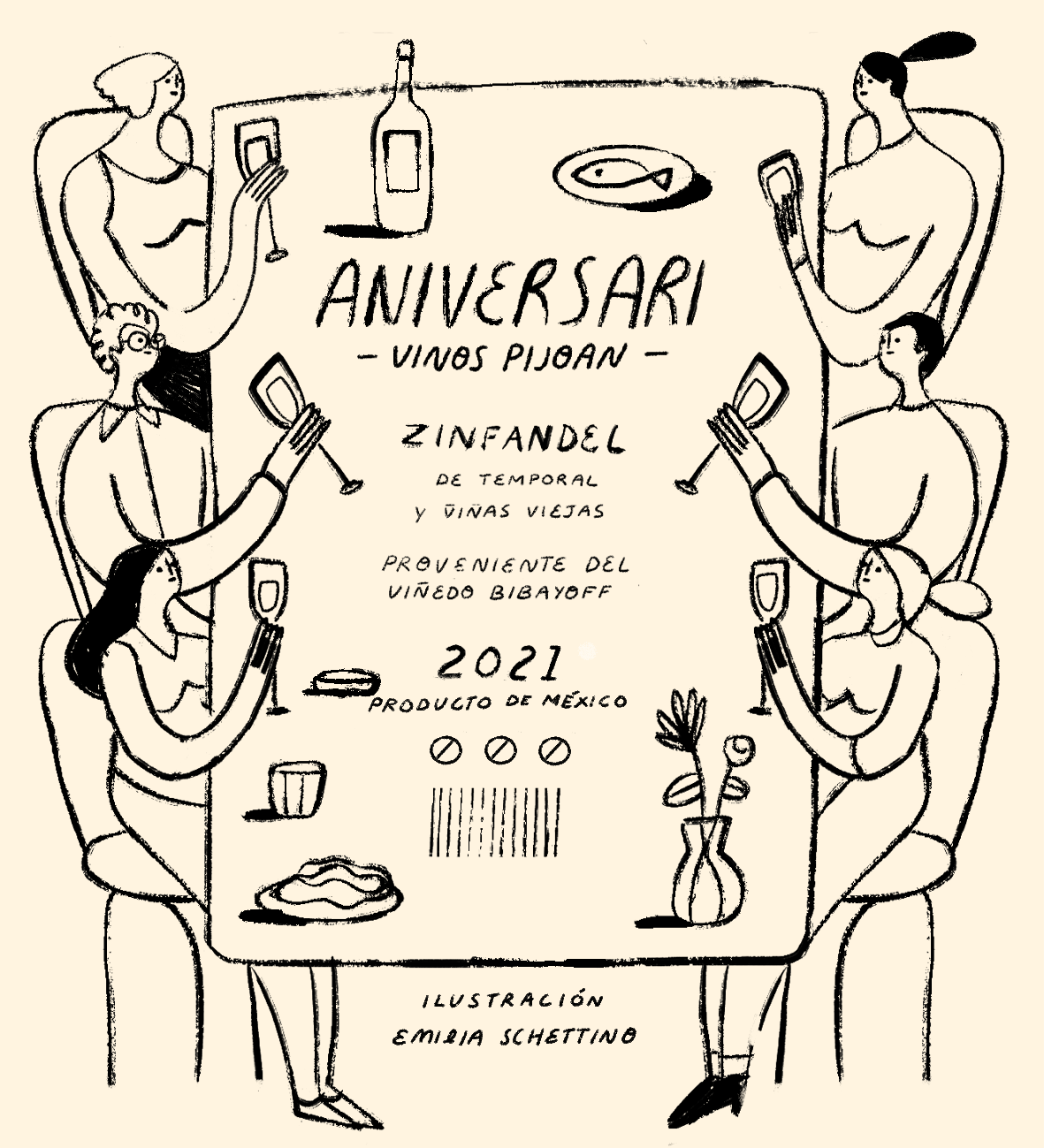 Ilustración para etiqueta de vino, Aniversari / Illustrated label for Aniversari wine